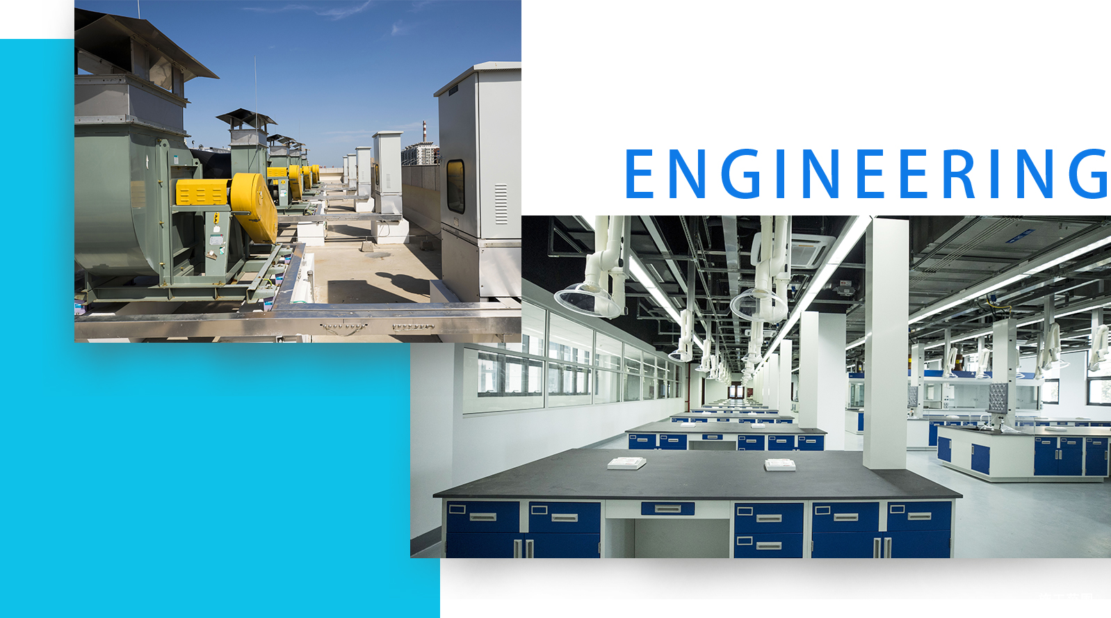 包含:实验区新风系统、实验区排风系统、实验室变风量气流控制系统、实验区空气品质监测系统、实验室纯水系统、实验室洁净系统、热水系统、接地系统、地下冷库系统。