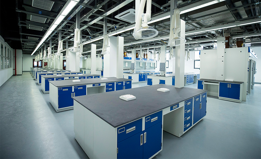 新能源中心实验楼总共4层,实验楼总面积约11800平米,分6室油/煤共炼实验、22室生物质实验、19室以及1室中心科研用房,根据实验操作流程,本实验大楼内分为样品制备、理化分析、仪器分析及相关实验支持区域。为实验室配套的设施有新风系统、排风系统、空调系统、气路系统、废气处理系统、实验室家具等设施。大开间共享实验室采用综合支架方式布局各类管道桥架和设备,水电气的供应采用快插模式,部分实验台采用可移动设计,便于未来实验室研究功能转化。